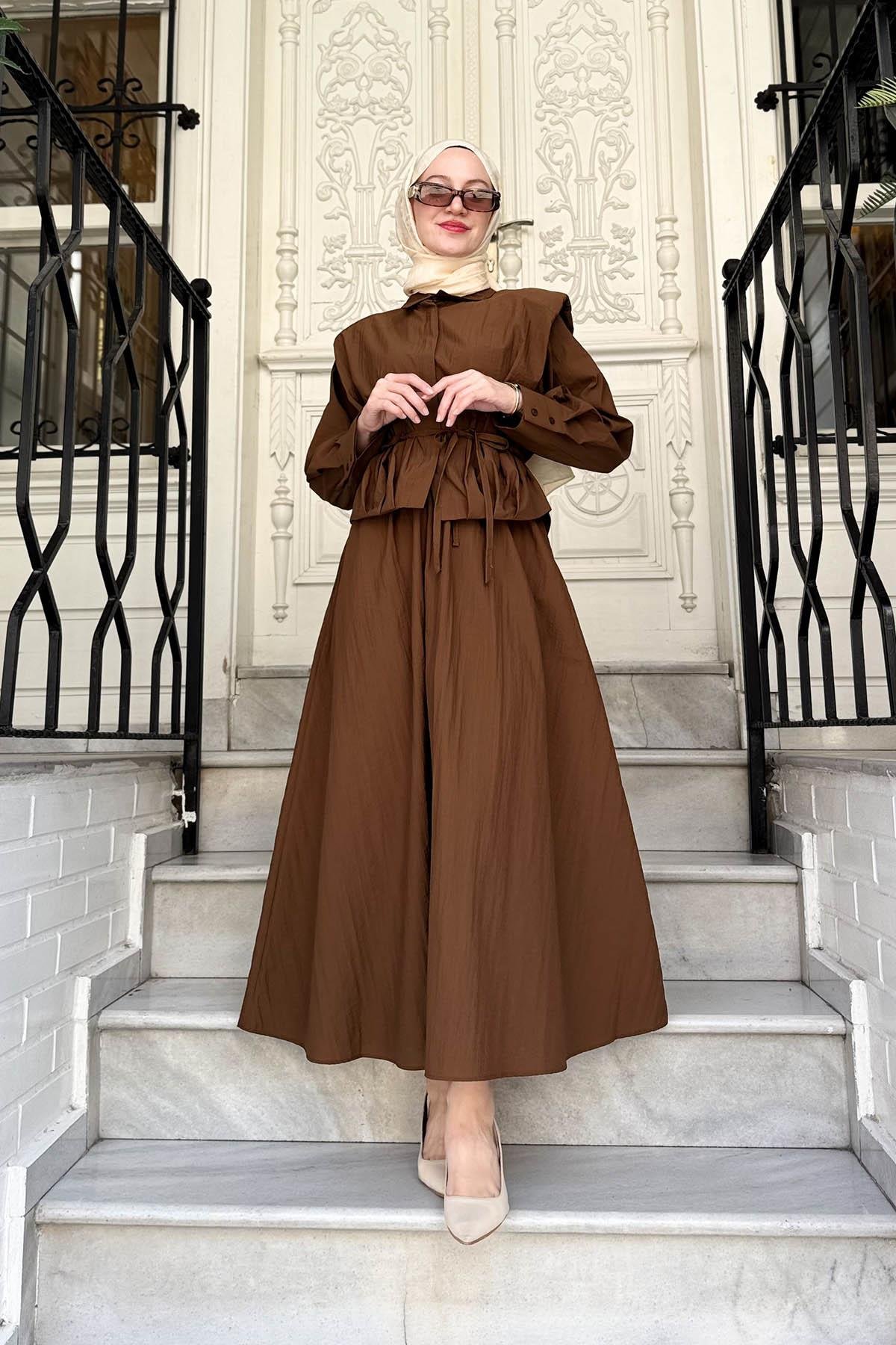 Bağlama Detay Etek Takım Kahve Rengi (TKM1095)