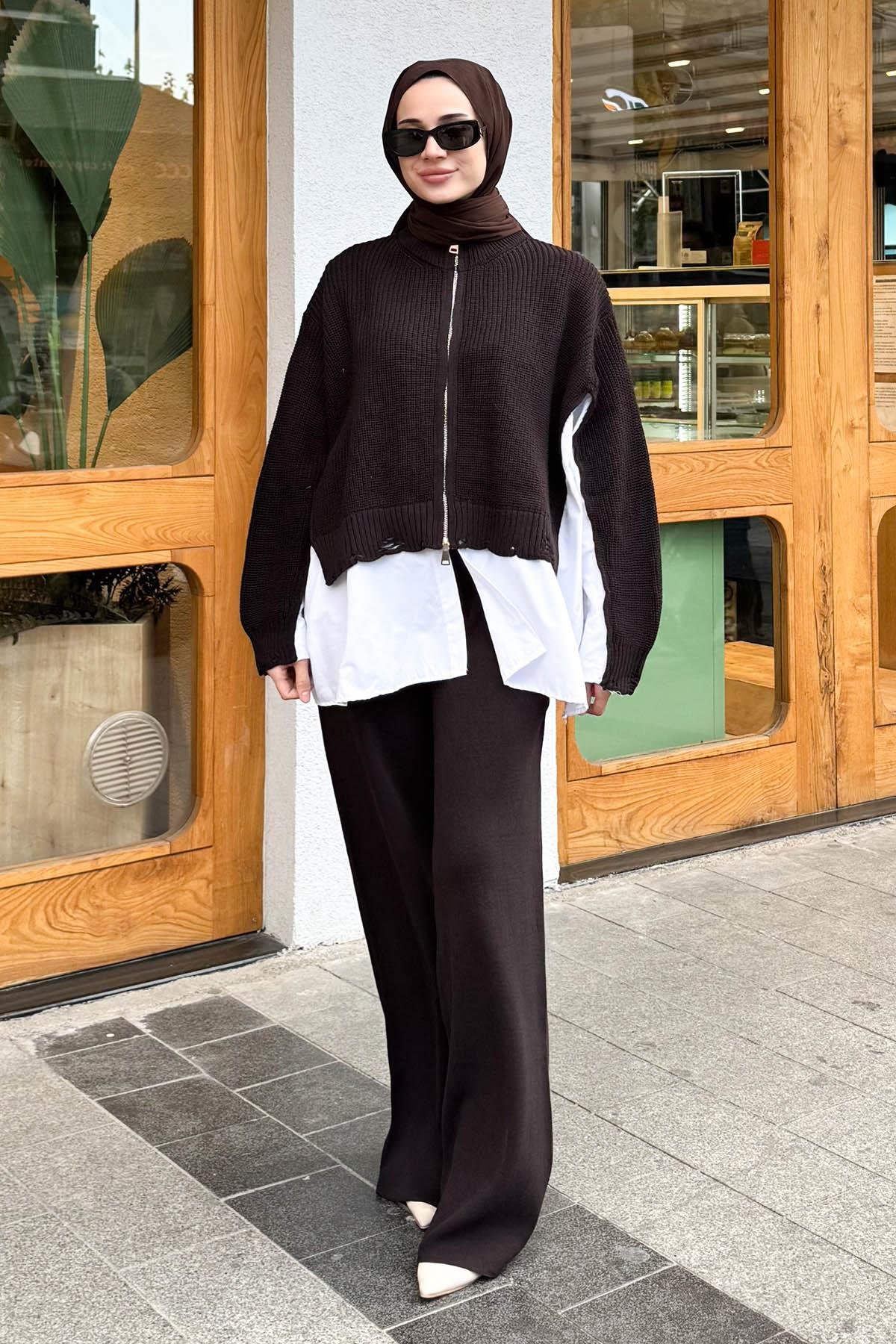 Garnili Gömlek Detaylı Takım Acı Kahve (TKM1101)