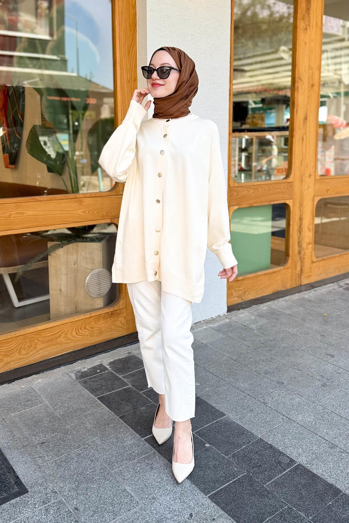 Soğuk İplik Merserize Hırka Krem (HRK1001)